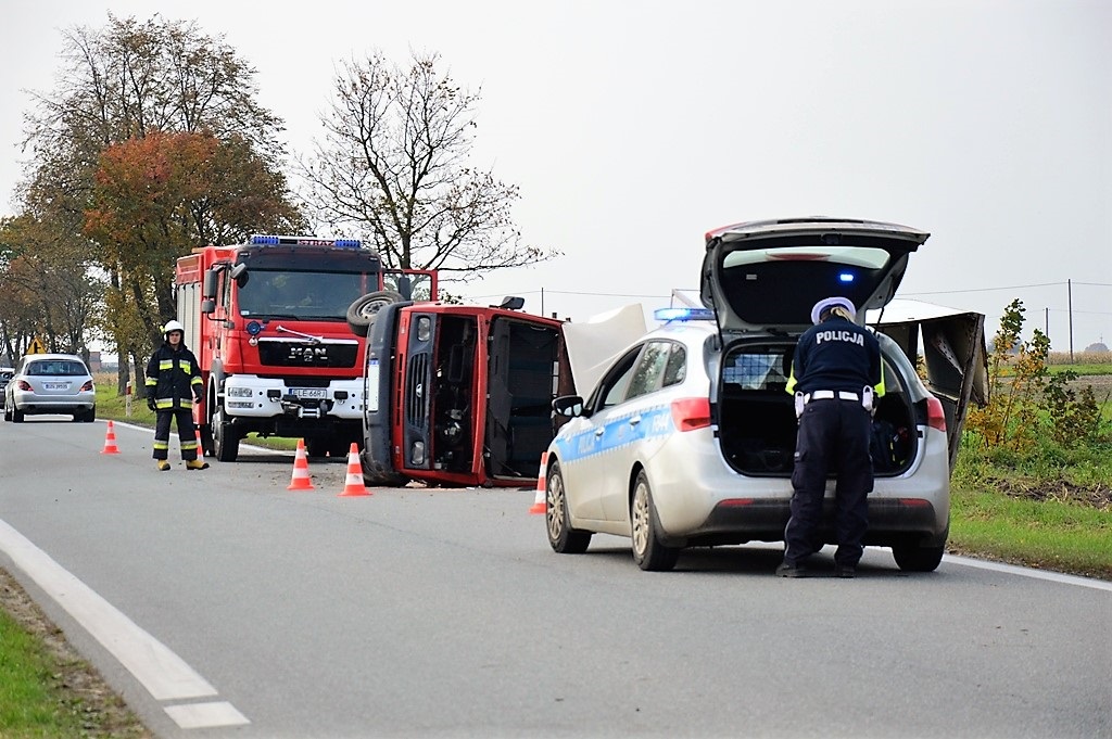- Podczas wykonywania manewru wyprzedzania przez kierującego samochodem osobowym marki BMW skręcającego w tym czasie w lewo pojazdu marki Lublin doszło do zderzenia obu pojazdów w wyniku czego kierujący i pasażer pojazdu Lublin odnieśli obrażenia i zostali przewiezieni do ZOZ Łęczyca.