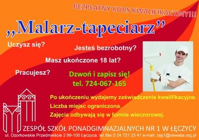 Bezpłatny kurs kwalifikacyjny "Malarz-tapeciarz"