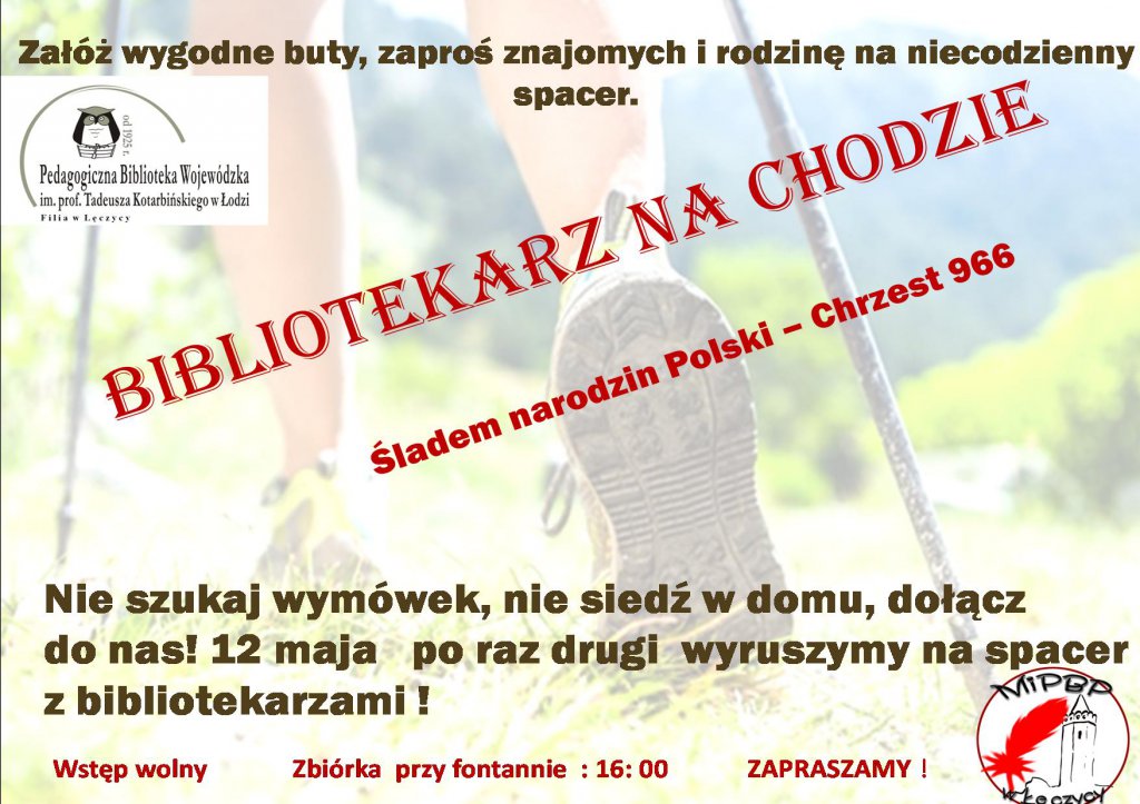AktualnościZałóż wygodne buty, zaproś znajomych i rodzinę na niecodzienny spacer.12 maja o godzinie 16 odbędzie się spacer z bibliotekarzami. Zbiórka przy fontannie, wstęp wolny!