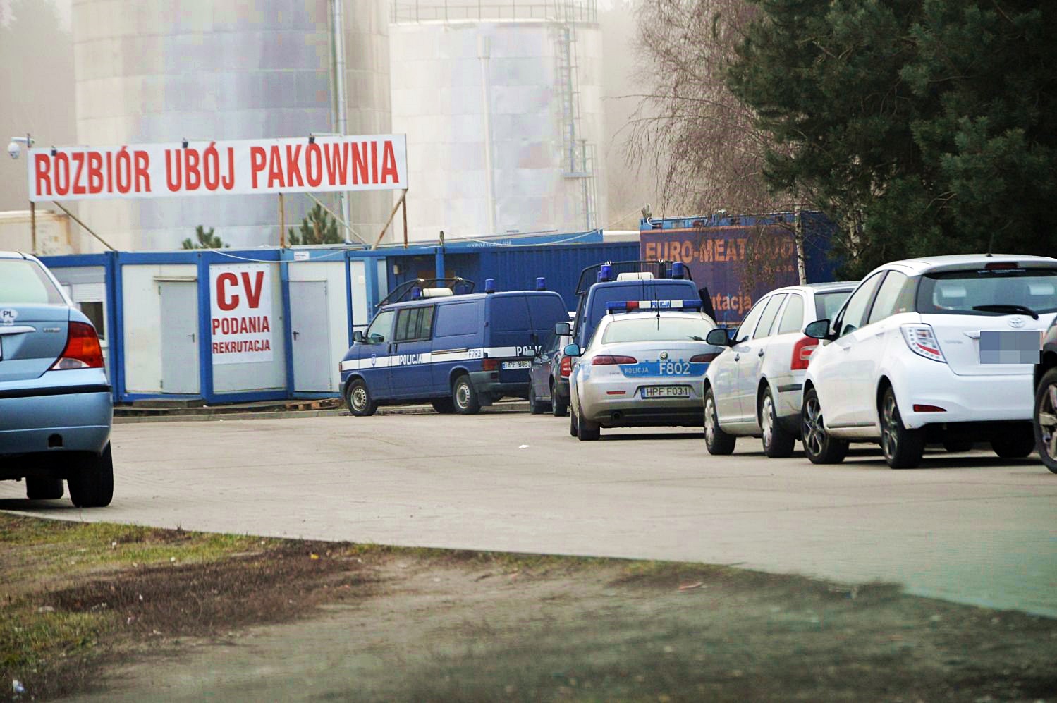 CBŚ w kutnowskiej ubojni. Przed zakładem stoi kilka radiowozów