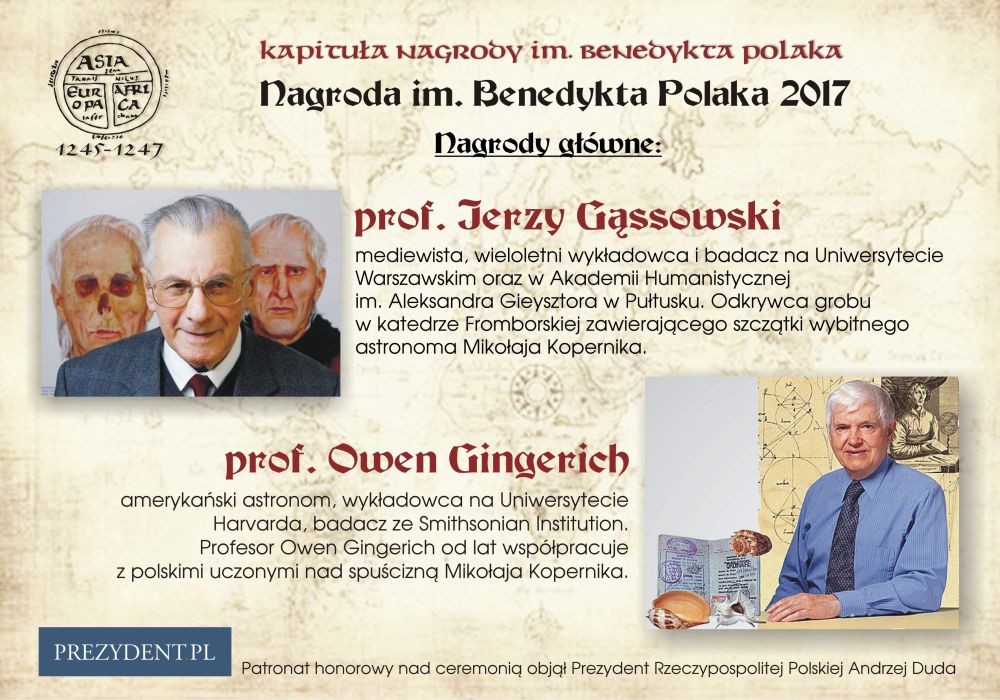 - prof. dr Owen Gingerich, amerykański astronom i historyk nauki Uniwersytetu Harvarda oraz badacz Smithsonian Institution. Profesor Owen Gingerich od lat współpracuje z polskimi uczonymi nad spuścizną Mikołaja Kopernika.