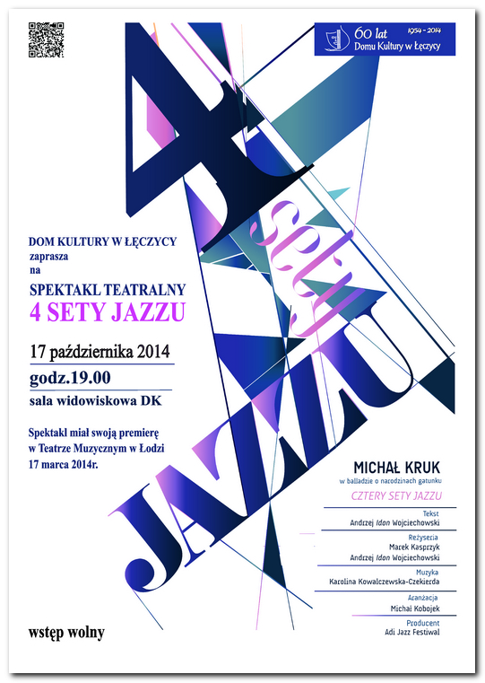 AktualnościDom Kultury zaprasza na spektaktl "Cztery sety jazzu", który odbędzie się 17 października o godzinie 19. Spektakl powstał na podstawie książki Andrzeja Idona Wojciechowskiego „Był jazz”. Autor był członkiem legendarnego zespołu Melomani – pierwszej polskiej grupy muzycznej, która grała – jak to określił Stefan Kisielewski – jazz świadomy.Monodram opisuje sytuacje z czasów przełomu lat 40. i 50., kiedy w powojennej Polsce rodził się jazz. Był to okres w rozwoju polskiej kultury niezwykle ważny, bowiem rodziło się pokolenie „Niewinnych Czarodziei” opisywanych do dziś w literaturze, zapisanych także w filmach tzw. polskiej szkoły filmowej. Monodram w sposób lekki i dowcipny opisuje nieznane epizody z życia Romana Polańskiego, Krzysztofa Komedy, Wisławy Szymborskiej, Jana Machulskiego, Andrzeja Trzaskowskiego... Rolę narratora wykonują Michał Kruk (aktor Teatru Komedia w Warszawie i Teatru Nowego w Łodzi) lub Marek Kasprzyk, laureat Złotej Maski, aktor i reżyser.Epizody muzyczne na saksofonie realizuje jeden z najwybitniejszych muzyków młodego pokolenia – Michał Kobojek, który występuje sam lub z zespołem (w skład którego wchodzą kontrabasista i gitarzysta).Czas trwania spektaklu - 80 minutReżyseria - Marek Kasprzyk i Andrzej Idon WojciechowskiBallada (motyw przewodni) - Karolina Kowalczewska-CzekierdaSaksofon i aranżacja - Michał Kobojek z zespołem