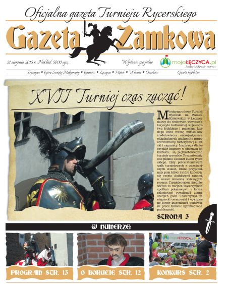 AktualnościJest nowe - specjalne - wydanie magazynu Mojałęczyca.pl!Z okazji XVII Turnieju Rycerskiego w numerze: Pełen program imprezy, Turniej czas zacząć! - najważniejsze atrakcje XVII edycji, Konkurs z atrakcyjnymi nagrodami, O kowalu, który wykuł Srebrną Brzechwę, Wacław Skalski - łęczycką gwarę zna jak nikt, Diabeł rozsławia Łęczycę, Turniejowe reminiscencje, Besiekiery nie gęsi...Pobierz plik PDF
