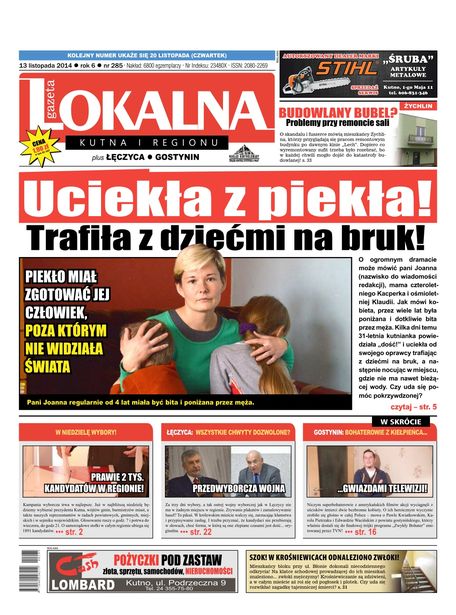 AktualnościJuż jest nowy numer "Gazety Lokalnej"! W numerze: Uciekła z piekła! Trafiła z dziećmi na bruk!, W niedzielę wybory! Prawie 2 tys. kandydatów w regionie!, Prokuratura prześwietli MDK?, Przejazdy zamknięte na wybory. Przypadek czy spisek?, Spotkali się z historią, Strach lokalnych sklepikarzy. "Puszczą nas z torbami", Do bidona lej lipona i kompromitacja Andrzeja Olszewskiego. Szokująca wojna przed wyborami!, Szok! W Krośniewicach odnaleziono zwłoki, Budowlany bubel. Podwójne pieniądze na remont hali?, Fatalna końcówka pogrążyła Polfarmex.Do tego największa kutnowska giełda pracy, autogiełda, dodatek sportowy oraz program telewizyjny w prezencie!Gazeta Lokalna! Blisko Twoich spraw! Cena 1,90 zł!Wejdź na stronę www.gazetalokalna.comi czytaj najnowsze artykuły!Kup wydanie elektroniczne na eGazety.pl