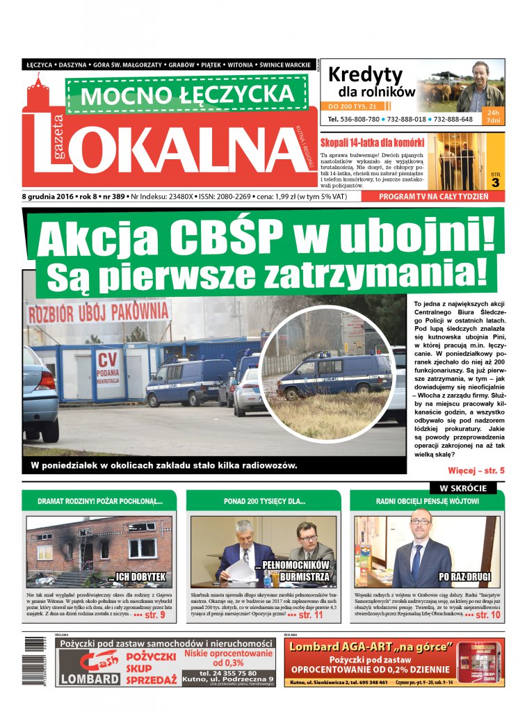 AktualnościJuż jest nowy numer "Gazety Lokalnej"! W numerze: Staruszek sypiał z pistoletem! Wydała go żona, Tragedia na A1. Pasażer spalił się w samochodzie, Akcja CBŚ w ubojni! Są pierwsze zatrzymania!, Dramat rodziny spod Witoni! Pożar pochłonął cały ich dobytek, Na tacę za parkowanie? "Ksiądz chce wprowadzić opłaty pod kościołem!", Śmierć na libacji? Zadźgał własną kobietę!Do tego największa kutnowska giełda pracy, autogiełda, dodatek sportowy oraz program telewizyjny w prezencie!Gazeta Lokalna! Blisko Twoich spraw! Cena 1,99 zł!Wejdź na stronę www.gazetalokalna.comi czytaj najnowsze artykuły!Kup wydanie elektroniczne na eGazety.pl