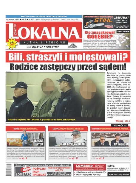 AktualnościJuż jest nowy numer "Gazety Lokalnej"! W numerze: Bili, straszyli i molestowali? Rodzice zastępczy przed sądem!, Zainwestują w Kutno 125 mln zł! 60 osób znajdzie pracę, Na przejściu niemal straciła życie. - Przy Drobiuszu potrzebne są światła - twierdzą Kutnianie, Kutnianin zachwycał w You Can Dance!, Wielkanocne spotkania z folklorem, Kolejna bestia o krok od Gostynina!, Wielka wojna na działkach. Mają dość zalewań!, Gmina Oporów: Kto zmasakrował gołębie?, Auda wierzy w awans Polfarmexu do fazy play-off.Do tego największa kutnowska giełda pracy, autogiełda, dodatek sportowy oraz program telewizyjny w prezencie!Gazeta Lokalna! Blisko Twoich spraw! Cena 1,99 zł!Wejdź na stronę www.gazetalokalna.comi czytaj najnowsze artykuły!Kup wydanie elektroniczne na eGazety.pl