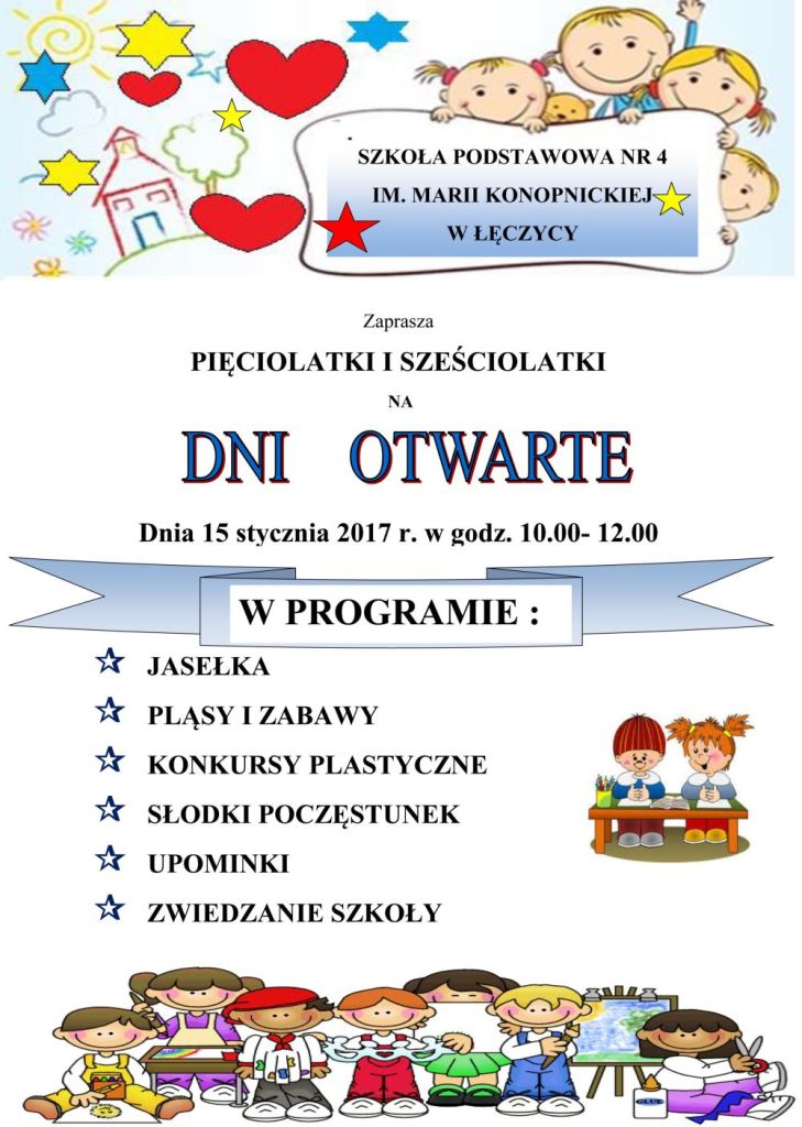 AktualnościPodczas 25. Finału WOŚP (15 stycznia - niedziela) w Szkole Podstawowej nr 4 im. Marii Konopnickiej w Łęczycy odbędą się Dni Otwarte dla Przedszkolaków.Od godz 10.00 do 12.00 Dyrektor i nauczyciele zapraszają dzieci z przedszkoli wraz z rodzicami do obejrzenia "Jasełek", które zaprezentują uczniowie z klas trzecich. Co więcej, dzieci będą mogły zwiedzać budynek szkoły, oglądać sale, w których uczą się ich koledzy i koleżanki. Ponadto, tego dnia przygotowano dla maluchów turniej sportowy, który odbędzie się w sali gimnastycznej. W stołówce, na każdego przedszkolaka będzie czekał pączek oraz szklanka kakao. Dla gości przewidziana niespodzianka, którą będzie można zabrać ze sobą do domu!