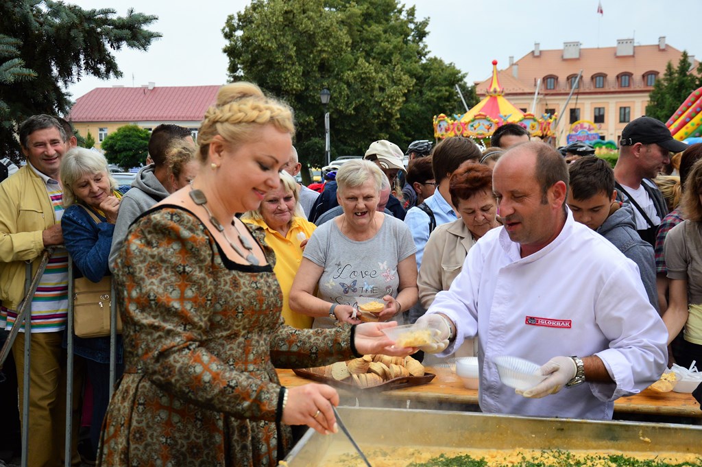 AktualnościSłowo stało się ciałem, a jajka jajecznicą. Przed godziną 10 przed ratuszem miejskim rozpoczęło się wielkie smażenie jajecznicy składającej się z 1078 jaj (nie pytajcie o dwa brakujące).Kucharze, choć wyśmienici, potrzebowali jednak pomocy, której chętnie udzielili najmłodsi. Było więc wspólne rozbijanie jajek, a potem konsekwentne mieszanie i przyprawianie tak, aby posiłek smakował wszystkim. Pierwsza dania spróbowała p.o. burmistrza Monika Kilar-Błaszczyk, a po aprobacie każdy chętny otrzymał swoją porcję. Po obfitym śniadaniu można kontynuować turniejową zabawę.