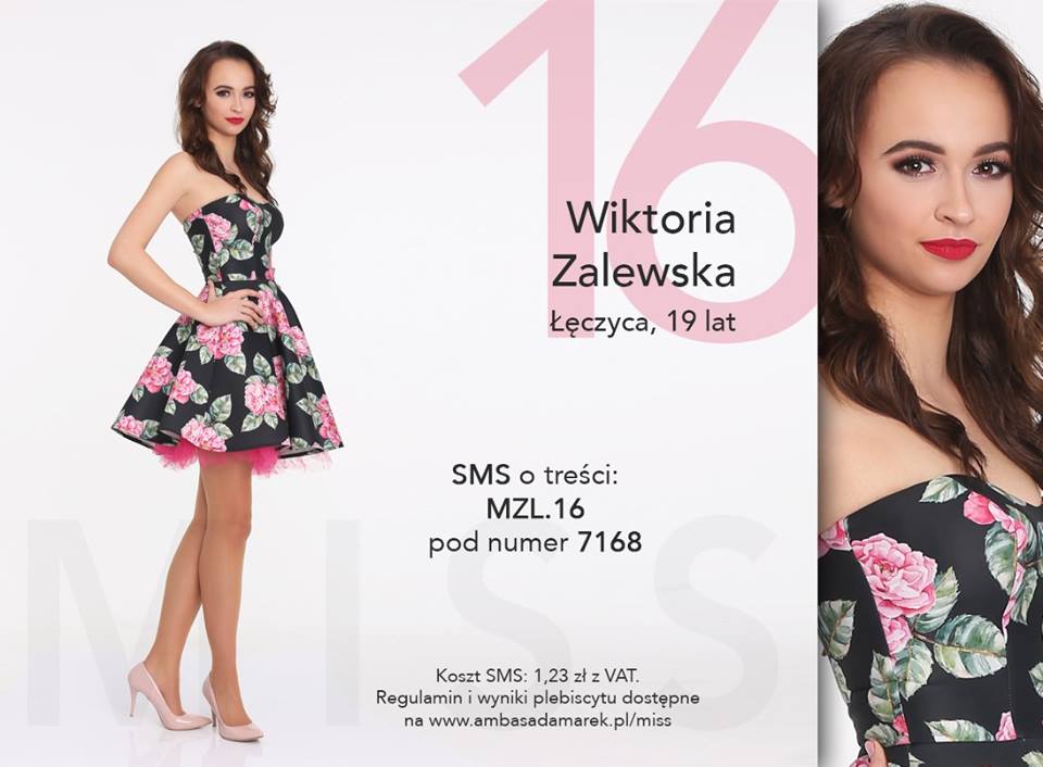 AktualnościI Ty możesz zostać jurorem w konkursie Miss. Właśnie trwa konkurs Miss Ziemi Łódzkiej Publiczności, gdzie swoją urodę prezentuje 16 pań, w tym jedna wyjątkowa – bo łęczycanka – Wiktoria Zalewska. Wiktoria z sukcesami w przeszłości prezentowała się na wybiegu. W 2014 roku została I vicemiss oraz Miss Foto w wyborach Miss Polski Ziemi Łódzkiej Nastolatek 2014.Na łęczycankę można głosować wysyłając SMS o treści MZL.16 pod numer 7168 (koszt 1,23 zł z VAT). Głosowanie trwa do 2 czerwca do godziny 20:00.Naszą reprezentantkę wspiera i prosi o głosy grupa jej najbliższych przyjaciół „Żubry”.