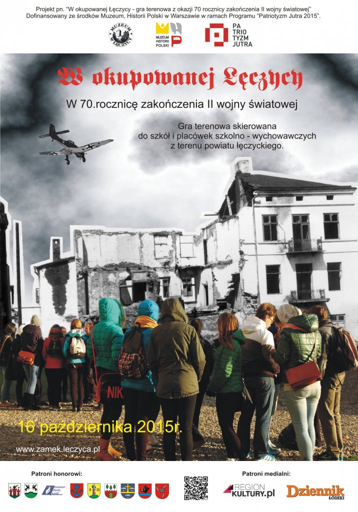 AktualnościZ okazji 70 rocznicy zakończenia II wojny światowej, Muzeum w Łęczycy zorganizuje 16 października, grę terenową, zrealizowaną w oparciu o publikacje, wspomnienia uczestników tych wydarzeń, wojennej i powojennej, prasy lokalnej, materiały archiwalne oraz muzealia naszej placówki.Gra odbędzie się w ramach projektu pn. W okupowanej Łęczycy - gra terenowa z okazji 70 rocznicy zakończenia II wojny światowej, dofinansowanego ze środków Muzeum Historii Polski w ramach Programu Patriotyzm Jutra.Karta zgłoszeniowaRegulaminZgoda rodziców