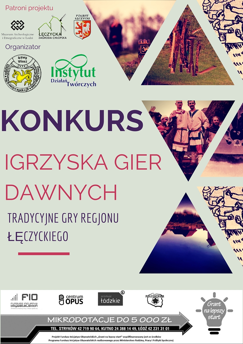 AktualnościWeź udział w konkursie "Igrzyska Gier Dawnych" - tradycyjne gry regionu łęczyckiego.Konkurs adresowany jest do duetów babcia+wnuczek, sąsiadka+ gimnazjalista, ciocia+siostrzeniec...Grunt, żeby jedna osoba z duetu miała skończone 60 lat, druga zaś reprezentowałą młode pokolenie. Cel to przypomnienie sobie dawnych gier i zabaw, które jeszcze pamiętają nasi dziadkowie.Prace można nadsyłać do 1 lipca. Szczegóły w załączniku.