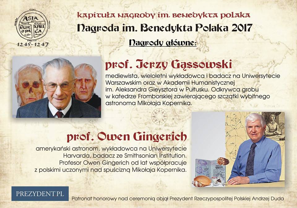 - prof. dr Owen Gingerich, amerykański astronom i historyk nauki Uniwersytetu Harvarda oraz badacz Smithsonian Institution. Profesor Owen Gingerich od lat współpracuje z polskimi uczonymi nad spuścizną Mikołaja Kopernika.