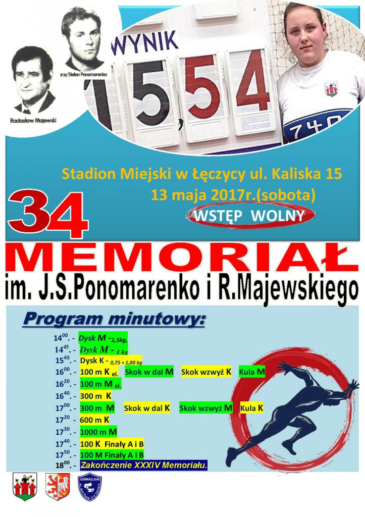 Aktualności34. Memoriał im. J.S. Ponomarenko i R. Majewskiego odbędzie się już w tę sobotę (13 maja) na stadionie miejskim w Łęczycy (ul. Kaliska 15).To duże lokalnie wydarzenie sportowe rozpocznie się o godzinie 14:00 konkurencją rzutu dyskiem. Zakończenie memoriału planowane jest na godzinę 18:00. Wstęp wolny.