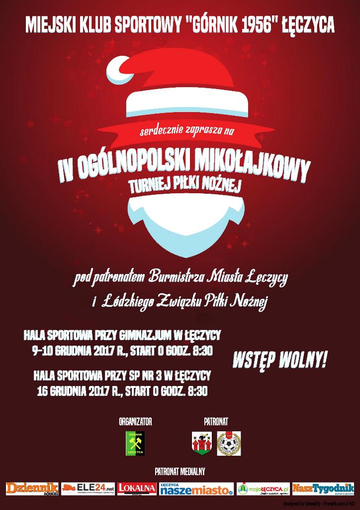 Wszystkich fanów piłki nożnej oraz pozytywnych wrażeń serdecznie zapraszamy. Przypominamy – sobota (9 grudnia), hala sportowa przy Szkole Podstawowej nr 1, start o godzinie 8:30.