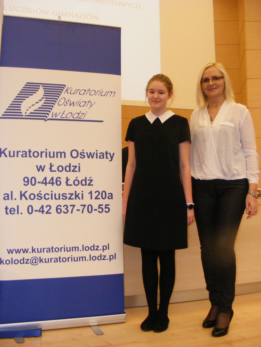 Podczas uroczystości Kaja otrzymała z rąk Kuratora Oświaty J. Kamińskiego gratulacje, dyplomy, książki i albumy o Polsce. Do gratulacji dołączyli się: wicewojewoda J. Klimas, dyrektor ŁCDNiKP Janusz Moos, przedstawicielka OKE J. Kowalska oraz dyrektor Wydziału Edukacji UM w Łodzi. Kolejną nagrodą dla laureatki wojewódzkich konkursów przedmiotowych jest zwolnienie z części humanistycznej, przyrodniczej i językowej egzaminu gimnazjalnego i tym samym zdobycie maksymalnej liczby punktów z egzaminu.