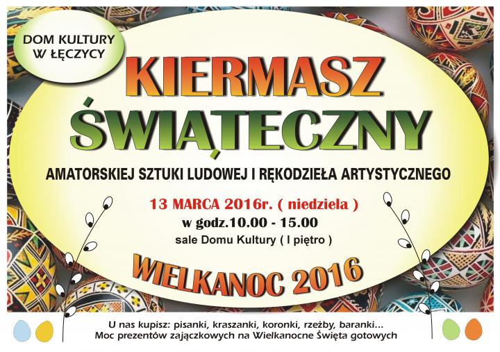 AktualnościDom Kultury w Łęczycy zaprasza na kiermasz świąteczny amatorskiej sztuki ludowej i rękodzieła artystycznego.Kiermasz odbędzie się 13 marca w godzinach 10 - 15 w sali Domu Kultury.