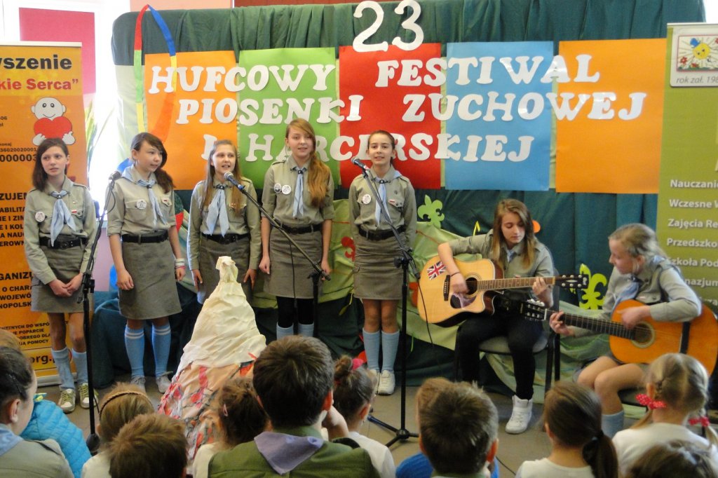 Uroczystego otwarcia XXIII Hufcowego Festiwalu Piosenki dokonał Dyrektor Ośrodka - Pan Andrzej Zielonka, a „Słoneczna Gromada” z Miejskiego Przedszkola w Uniejowie ochoczo rozpoczęła występy młodych artystów na festiwalowej scenie.