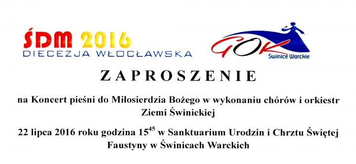 Aktualności22 lipca 2016 roku w Sanktuarium Urodzin i Chrztu Świętej Faustyny w Świnicach Warckich odbędzie się Koncert do Miłosierdzia Bożego w wykonaniu chórów i orkiestr Ziemi Świnickiej.Koncert rozpocznie się hymnem tegorocznych Światowych Dni Młodzieży pt. „Błogosławieni Miłosierni" w wykonaniu połączonych zespołów wokalnych Effatha, Cantabile i Świniczanki. „Abba Ojcze" hymn VI ŚDM z roku 1991, który się odbył w Częstochowie z Papieżem Janem Pawłem II będzie można usłyszeć w wykonaniu zespołów wokalnych i połączonych orkiestr dętych z OSP Grodzisko, OSP Stemplew i OSP Świnice Warckie. Schola Effatha działająca przy Parafii w Chwalborzycach zaśpiewa dwie pieśni „NIE BÓJ SIĘ" i „JESTEM TWÓJ" są to pieśni ze spotkania Młodych w Lednicy z 2016 i 2000 roku.