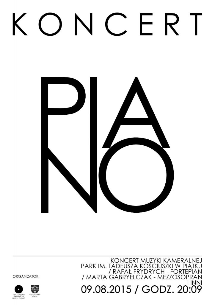 AktualnościTowarzystwo Miłośników Piątku i Okolic oraz Urząd Gminy Piątek zaprasza na Koncert muzyki kameralnej, który odbędzie się w przestrzeni parku im. Tadeusza Kościuszki w Piątku, w niedzielę 9 sierpnia o godz. 20:09.W kameralnej scenerii w pobliżu altany pianista Rafał Frydrych oraz mezzosopranistka Marta Gabryelczak zaprezentują utwory najwybitniejszych kompozytorów. W repertuarze Camille Saint Saens, Gioacchino Rossini, Giuseppe Verdi, Georges Bizet, Franz Schubert, Stanisław Moniuszko.