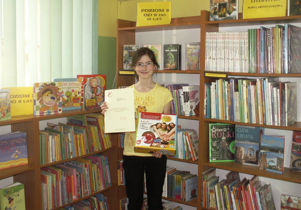 AktualnościNajlepszym czytelnikiem Oddziału dla Dzieci i Młodzieży MiPBP w Łęczycy w roku szkolnym 2014/2015 okazała się Natalia Kapica – uczennica klasy VI ze Szkoły Podstawowej Nr 4 w Łęczycy (94 przeczytane książki). O wyłonieniu zwycięzcy zadecydowała ilość wypożyczonych i przeczytanych książek w okresie od 1 października 2014 r. do 29 maja 2015 r. Wręczenie nagrody odbyło się 10 czerwca. Zwyciężczyni konkursu serdecznie gratulujemy i życzymy kolejnych sukcesów!!!