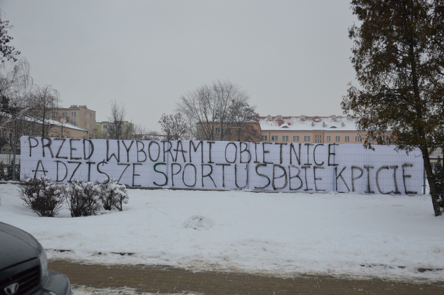 Aktualności„Przed wyborami obietnice, a dziś ze sportu sobie kpicie" - taki transparent pojawił się na ogrodzeniu Stadionu Miejskiego vis a vis urzędu. Jest to forma protestu wobec przesunięcia w budżecie kwoty 20 tys. zł. z dotacji na sport i przyznanie jej Ochotniczej Straży Pożarnej. Tak zadecydowali w grudniu radni podczas układania budżetu. Protestował wtedy Robert Łukasiewcz, rezygnując z funkcji przewodniczącego komisji sportu i rekreacji. Kibice z funkcji zrezygnować nie mogą - mogą jednak wieszać transparenty. Przeczuwamy także nowe stadionowe przyśpiewki...