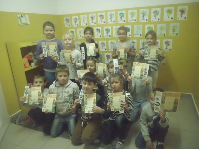 Podczas spotkania dzieci poznały tropy zwierząt, rozmawiały o życiu i zwyczajach wilków oraz wysłuchały przygód Szarki, o których opowiedziała im bibliotekarka. Następnie kolorowały ilustracje bohaterów omawianej książki. Na zakończenie warsztatów dzieci otrzymały dyplomy „Czytam sobie w bibliotece" oraz naklejki.