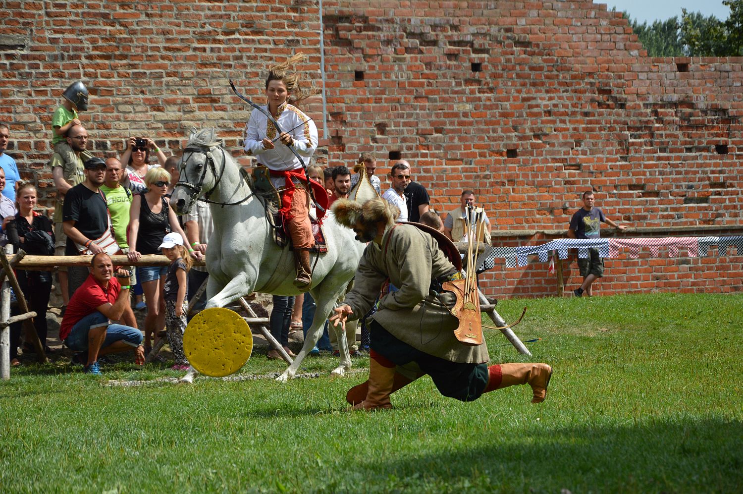 AktualnościPokazy ciężkozbrojnych urozmaicone zostały przez łuczników z Pokazowej Grupy Konnej AMM "Archery". Anna Sokólska i Michał Szubski dali popis łucznictwa konnego. Efektowny pokaz składał się ze strzelectwa zza głowy w pełnym ruchu czy celowanie stojąc na grzbiecie stojącego rumaka.Popisali się także XV-wieczni łucznicy angielscy, zobrazowani przez Grupę Łuczników św. Jerzego. Zademonstrowali jak wygladała walka - jak się okazuje wyspiarze przygotowani byli nie tylko na atak z dystansu (w tym strzałami zapalającymi), ale także i na walkę w zwarciu.