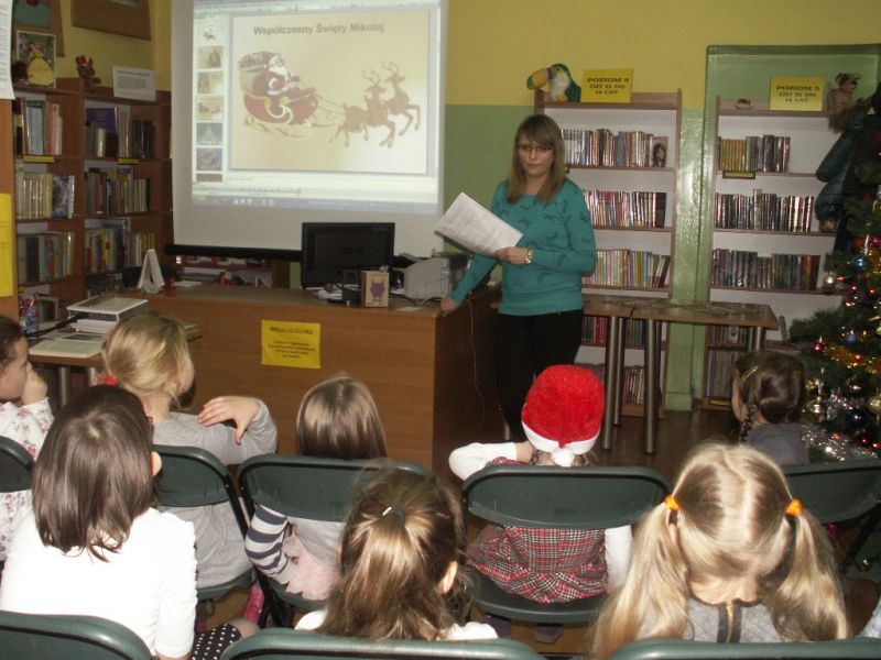 Dzieci musiały wykazać się spostrzegawczością, zwinnością oraz talentem plastycznym. W przerwie między zadaniami czekał na nie słodki poczęstunek. Na koniec w nagrodę za dobrze wykonaną pracę dzieci otrzymały prezenty-niespodzianki, które św. Mikołaj zostawił dla nich w bibliotece. Był to mile spędzony czas, o czym świadczyły uśmiechy na twarzach dzieci.