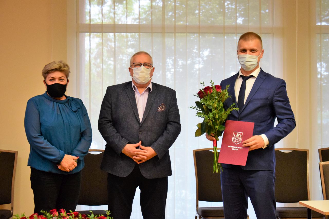Burmistrz Paweł Kulesza miał także przyjemność wręczyć nauczycielowi Szkoły Podstawowej nr 1 panu Łukaszowi Cybulskiemu nagrodę Łódzkiego Kuratora Oświaty.