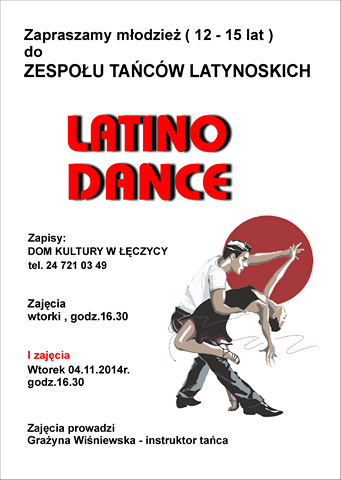 AktualnościDom Kultury w Łęczycy zaprasza na nowe zajęcia organizowane dla młodzieży.Nauka gry na gitarze:Zajęcia w piątki, koszt miesięczny - 40 zł od osoby.Zespół tańców latynowskich:Zajęcia dla młodzieży 12-15 lat we wtorki o godzinie 16:30.