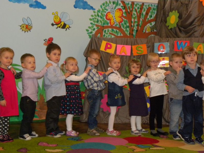 Na zakończenie uroczystości w każdej z grup dzieci złożyły uroczyste ślubowanie powtarzając za nauczycielem słowa przysięgi. Po złożonym przyrzeczeniu pani dyrektor Joanna Stańczyk pasowała dzieci na prawdziwych przedszkolaków.