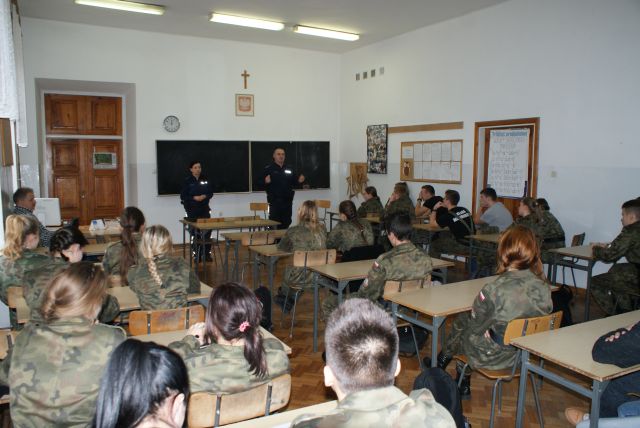 Profilaktyk mł.asp. Agata Bierzyńska oraz dzielnicowi Zespołu Dzielnicowych Komendy Powiatowej Policji w Łęczycy spotkali się z uczniami klas mundurowych Zespołu Szkół im Jadwigi Grodzkiej w Łęczycy . Wraz z policjantami na zaplanowane spotkanie przybyła Prezes Ochotniczej Straży Pożarnej w Łęczycy pani Aneta Krysztofiak. W pierwszej części spotkania młodzież wysłuchała o zagrożeniach jakimi są środki psychoaktywne i jaka odpowiedzialność karna spoczywa na osobach które posiadają, udzielają czy wprowadzają do sprzedaży substancje zabronione przepisami prawa. Podczas kolejnej części spotkania mł.asp. Amadeusz Kościelski opowiedział o służbie w policji w poszczególnych wydziałach, przekazał uczniom informacje na temat procesu postępowania kwalifikacyjnego, jego poszczególnych etapach, wymaganiach oraz miejscu składania dokumentów i terminach przyjęć.