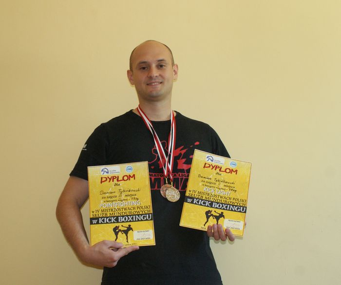 AktualnościSt. sierż. Damian Tybińkowski z Komendy Powiatowej Policji w Łęczycy stanął na podium podczas IV Mistrzostw Polski Służb Mundurowych w Kick-boxingu, które odbyły się w dniach 10-12 czerwca br. w Sanoku.Policjant rywalizował w dwóch formułach: Pointfighting oraz Kick-light, zajmując odpowiednio trzecie i drugie miejsce.Mężczyzna od 13. roku życia trenuje kick-boxing. Uprawiał też inne sztuki walki, m.in. MMA, karate, boks, taekwondo, w którym zdobył czarny pas. Policjant startował w Mistrzostwach Polski w Kick-boxingu, Pucharze Polski w MMA oraz Mistrzostwach Polski Służb Mundurowych MMA. Sztuki walki to jego pasja, z którą łączy przyszłość.