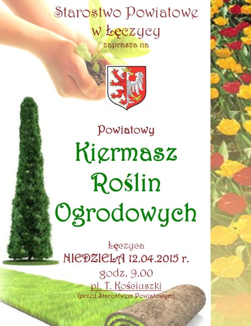 AktualnościStarostwo Powiatowe w Łęczycy zaprasza na Powiatowy Kiermasz Roślin Ogrodowych. Kiermasz będzie miał miejsce w niedzielę, o godzinie 9:00 na Placu Kościuszki (przed budynkiem Starostwa Powiatowego).