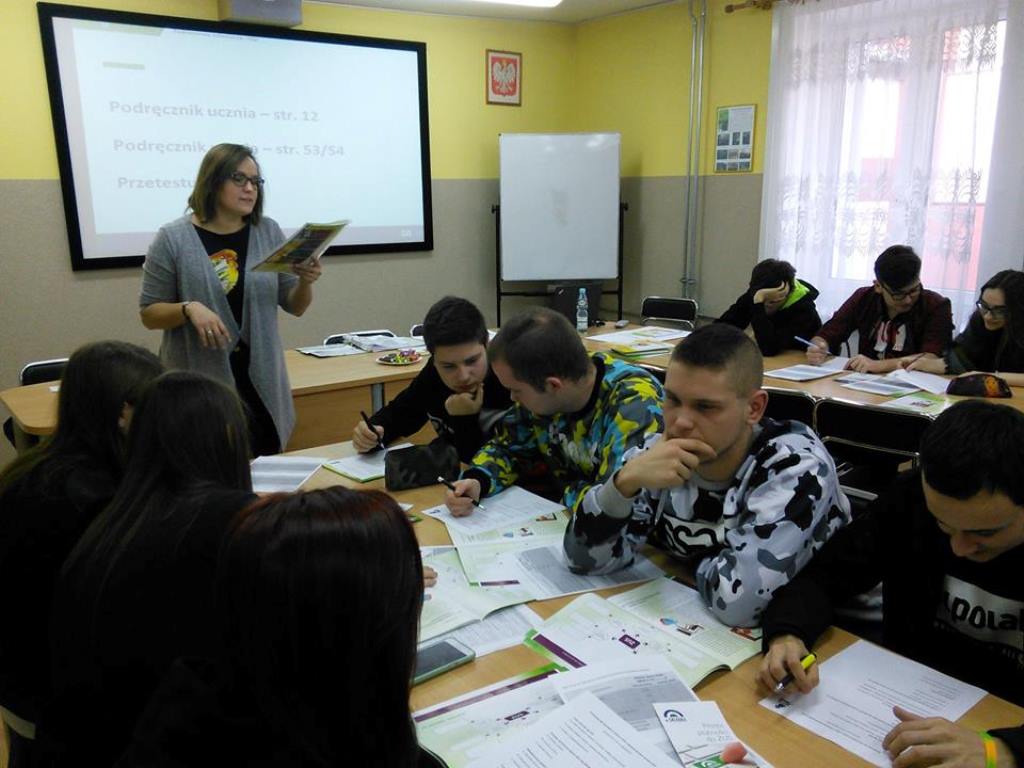 Podczas lekcji młodzież obliczała wymiar składek na ubezpieczenia społeczne i zdrowotne przy podstawie preferencyjnej i zwykłej, analizowała wnioski CEIDG-1, KRS- W1,NIP-8,ZUS DRA. Na koniec, podsumowując zdobyte wiadomości, uczniowie rozwiązali test pt. ,,Sprawdź co wiesz o ZUS i ubezpieczeniach społecznych”, z którym poradzili sobie bardzo dobrze.