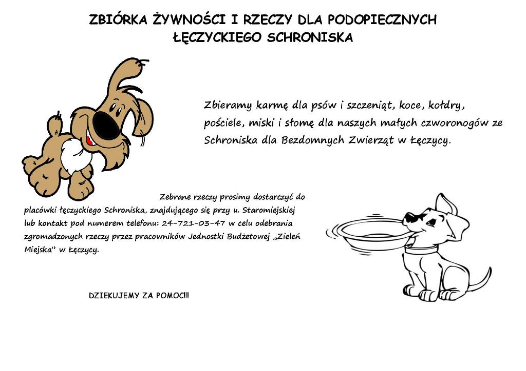 Przedmioty można zostawiać w schronisku na ul. Staromiejskiej lub umówić się przez telefon – 24 721 03 47 w celu odebrania podarowanych rzeczy przez pracowników jednostki.