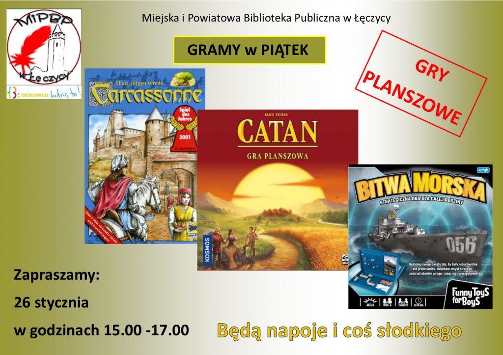 Przypominamy, że Miejska i Powiatowa Biblioteka Publiczna w Łęczycy w każdy ostatni piątek miesiąca organizuje zajęcia dla dzieci i młodzieży.