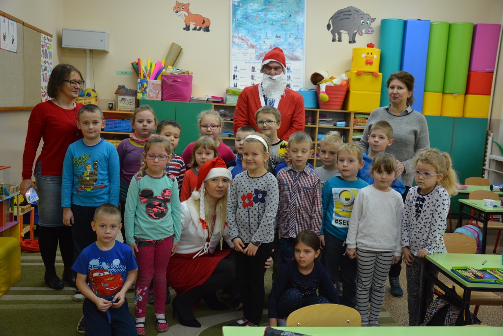 AktualnościW poniedziałek (5 grudnia) tuż przed tradycyjnymi Mikołajkami, wszystkie przedszkolaki z naszej Gminy odwiedził Święty Mikołaj w towarzystwie Śnieżynki.W jego rolę wcielił się Wójt Gminy Jacek Rogoziński. Wizyta Mikołaja spotkała się z dużym zaskoczeniem ze strony przedszkolaków, którzy powitali Pana w czerwonym ubraniu z wielkim entuzjazmem. W salach poszczególnych grup, dzieci otrzymały od Mikołaja czekoladowy upominek.Specjalnie dla Mikołaja przedszkolaki śpiewały piosenki i recytowały wierszyki. Na pamiątkę spotkania nasze pociechy robiły sobie zdjęcia z Mikołajem i jego pomocnikiem. W wesołym i świątecznym nastroju dzieci pożegnały miłego gościa, który obiecał odwiedzić je za rok.