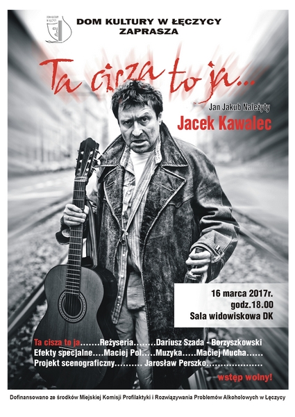 AktualnościDom Kultury w Łęczycy zaprasza na monodram Jacka Kawalca pt. "Ta cisza to ja...".Występ odbędzie się 16 marca o godzinie 18. Wstęp wolny.