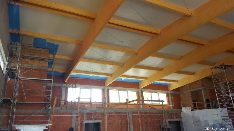 AktualnościRozpoczęły się prace wykończeniowe związane z budową hali sportowej przy Szkole Podstawowej nr 3 w Łęczycy. W ostatnich tygodniach montowany był dach obiektu. Obecnie trwa tynkowanie wewnątrz pomieszczeń hali oraz montaż parapetów, ościeżnic i stolarki okiennej. W kolejnym tygodniu rozpocznie się montaż pierwszych posadzek. Zgodnie z planem nowoczesna sala sportowa zbudowana ma powstać do końca listopada br. Wartość zadania ustalona w postępowaniu przetargowym wynosi 2,8 mln zł brutto.Oprócz samej sali sportowej o łącznej kubaturze 7743,0 m3 (długość- 36,70m, szerokość - 26,46m, wysokość 10,01m) zbudowane zostaną również przebieralnie z natryskami, sanitariaty, pomieszczenia trenerów oraz magazyn sprzętu sportowego. Zaplanowana została również widownia z pomieszczeniem technicznym na drugiej kondygnacji. Obiekt będzie dostosowany do potrzeb osób niepełnosprawnych.