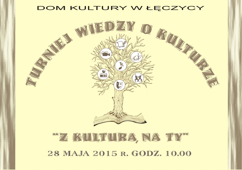 AktualnościDom Kultury w Łęczycy z okazji Dnia Działacza Kultury, który przypada 29 maja, po raz siódmy organizuje Powiatowy Turniej Wiedzy o Kulturze „Z kulturą na ty”. Konkurs jest przeznaczony dla uczniów szkół gimnazjalnych i ponadgimnazjalnych. W tym roku odbędzie się on 28 maja 2015 roku, o godzinie 10.00 na sali widowiskowej Domu Kultury w Łęczycy.Naszą intencją, jak co roku jest zwrócenie uwagi młodych ludzi na różne sposoby postrzegania hasła „kultura”, na to jak różne mogą być jej formy i aspekty. Konkurs spełni także rolę diagnozującą – wykaże na ile młodzież jest przygotowana do uczestnictwa w życiu kulturalnym i czy posiada niezbędną wiedzę, która pozwalałaby na swobodne w nim poruszanie się.