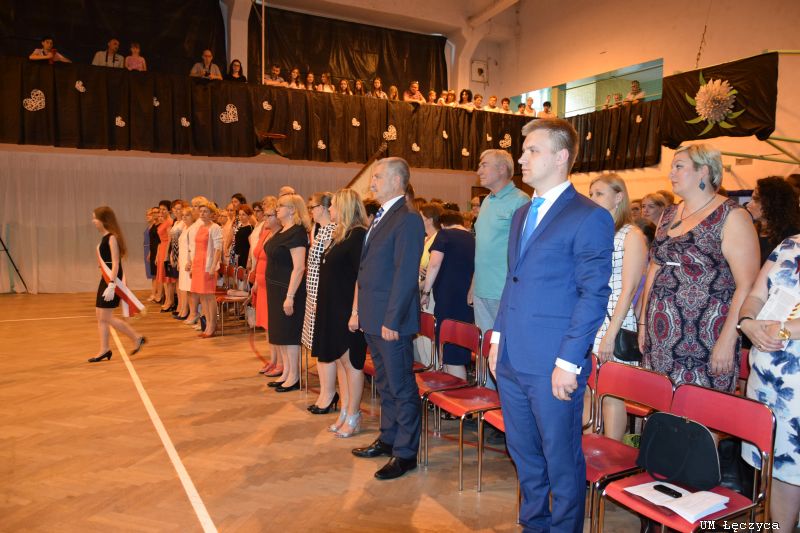 Burmistrz Łęczycy - Krzysztof Lipiński wyróżnił 3 uczniów. Dwoje z nich: Bartosz Serwak z kl. IIb oraz Martyna Zwolińska z kl. e otrzymało w nagrodę rowery za wysokie wyniki w nauce i 100% frekwencję. Przemysław Podleśny z kl. III b otrzymał tablet jako nagrodę za osiągnięcia w konkursach przedmiotowych (laureat wojewódzkiego konkursu przedmiotowego z historii oraz finalista wojewódzkiego konkursu przedmiotowego z wiedzy o społeczeństwie). Na zakończenie oficjalnych uroczystości absolwenci przekazali przedstawicielom klas drugich kronikę szkolną oraz sztandar.
