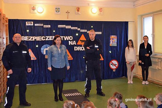 W sposób humorystyczny pokazali jak wyglądają zachowania pieszych na drodze. W czasie przedstawienia widzowie mogli zobaczyć nieodpowiednie zachowania pieszych na drodze. W spotkaniu uczestniczyli również zaproszeni goście, byli nimi panowie policjanci z Komendy Powiatowej w Łęczycy. Po zakończeniu przedstawienia policjanci rozmawiali z uczniami na temat zachowania się na drodze oraz bezpieczeństwa w ruchu drogowym.