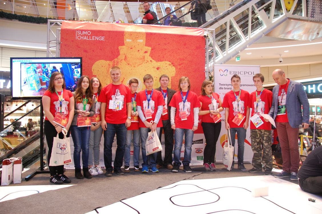 AktualnościW sobotę 21 listopada w rotundzie łódzkiej Manufaktury odbyły się bardzo prestiżowe Międzynarodowe Zawody Robotów – Sumo Challenge. Zaproszenie do turnieju kolejny raz otrzymało nasze Gimnajum im. Jana Pawła II w Łęczycy, jako szkoła wyróżniająca się we wprowadzaniu do programu nauczania elementów programowania i robotyki.W turnieju reprezentowały nas dwa zespoły. Uczniowie pod opieką Łukasza Cybulskiego przygotowali roboty, które wzięły udział w konkurencji Bear Rescue. Polegała ona na odnalezieniu w labiryncie obiektu i przetransportowaniu go do miejsca docelowego.