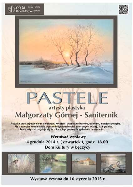 AktualnościJuż w czwartek, 4 grudnia, o godzinie 18:00 w Domu Kultury w Łęczycy odbędzie się wernisaż wystawy malarstwa Małgorzaty Górnej-Saniternik.Autorka prac zajmuje się malarstwem, kolażem, tkaniną unikatową, ubiorem, aranżacją wnętrz. Ma na swoim koncie wiele wystaw indywidualnych i zbiorowych w kraju i za granicą. Prace artystki znajdują sie w zbiorach prywatnych, galeriach i muzeach.