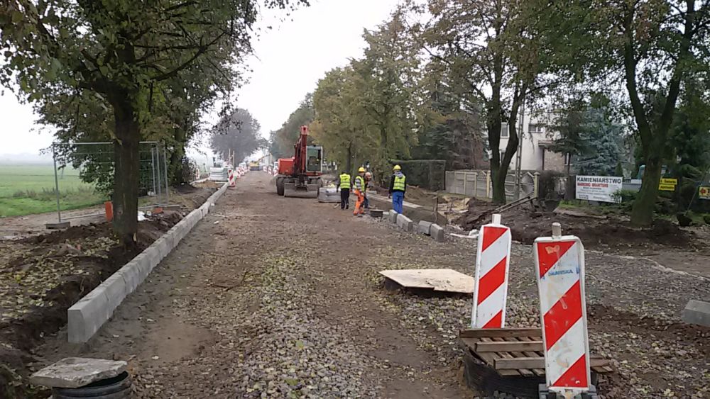Zgodnie z harmonogramem w terminie do 31 października wykonane zostaną następujące roboty budowlane na odcinku od rogatek miasta do stacji paliw: sieć wodociągowa, sanitarna i kanalizacyjna, wymiana gruntu – warstwa odsączająca, podbudowa pomocnicza z kruszywa łamanego oraz w zależności od warunków pogodowych planowane jest rozpoczęcie układania warstw bitumicznych.