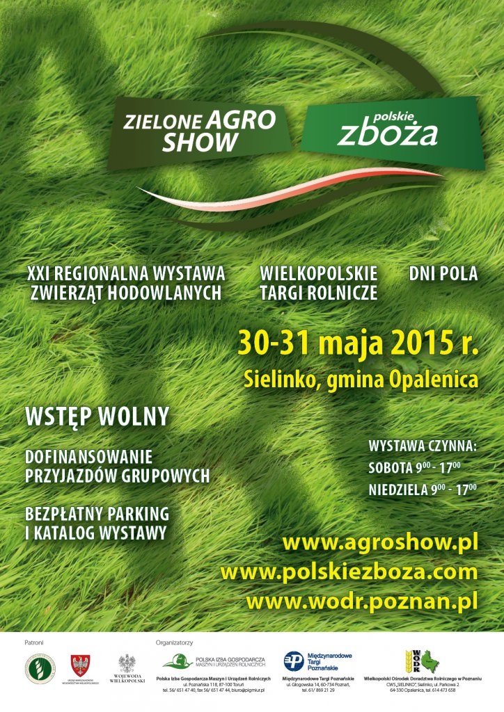 AktualnościGmina Grabów organizuje wyjazd na Zielone AGRO SHOW - Polskie Zboża 2015, które odbędą się w miejscowości Sielinko (gm. Opalenica).Wyjazd na Zielone Targi z Grabowa odbędzie się w niedzielę, 31 maja br. o godzinie 7.00. Koszt wyjazdu to 25 zł (cena może ulec zmianie, wszystko zależy od liczby uczestników).Zapisy w sekretariacie UG Grabów oraz pod numerem telefonu 63273412.