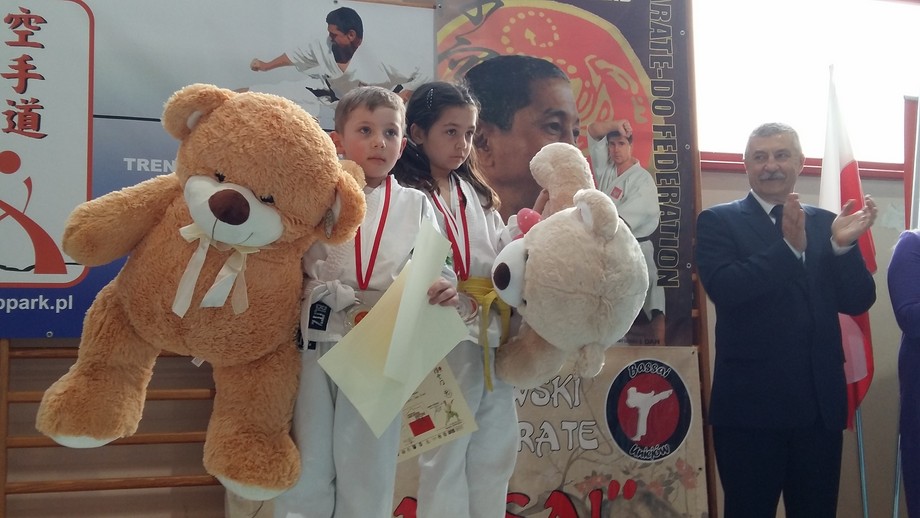 Szczególne upominki, w postaci olbrzymich misiów-pluszaków, otrzymali najmłodsi sześcioletni zawodnicy Blanka Banasiak (IPPON Łęczyca) oraz Maksymilian Jakubowski (Shotokan Brodnica).