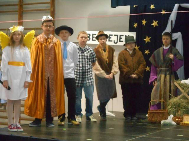 Młodzi aktorzy w kilku scenach przedstawili historię narodzin Jezusa – Odkupiciela świata, który przyszedł na ziemię, aby wszystkich ludzi uczynić dziećmi Bożymi i braćmi między sobą. Uczniowie przygotowani zostali przez katechetę - Włodzimierza Dudkę.