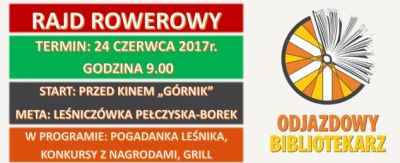 Loading...Zaproszenie do udziału w rajdzie rowerowym "Odjazdowy Bibliotekarz" | 1 / 21 / 2 | 2 / 22 / 2